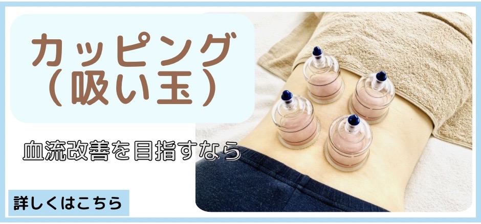 岡町おうち整骨院では、カッピングにより血流を促進し、老廃物の排出をサポート。