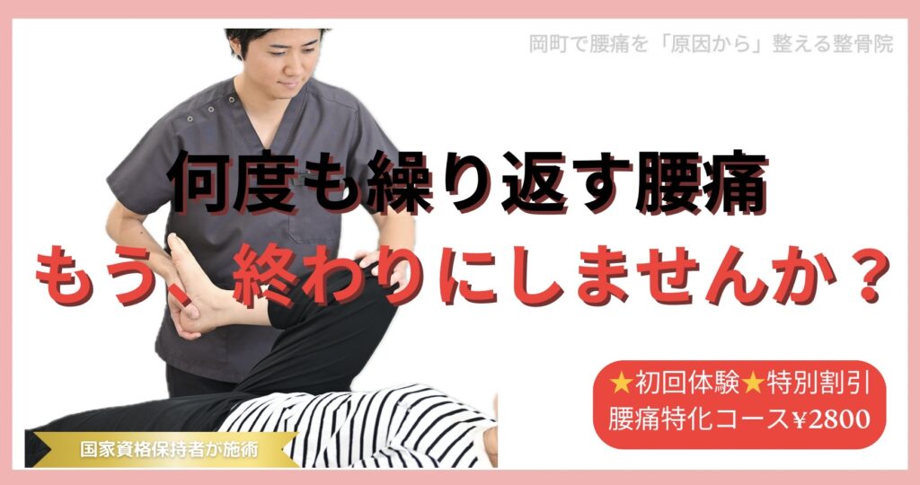 何度も繰り返す腰痛に悩んでいませんか?豊中市岡町で腰痛を原因から整える整骨院です